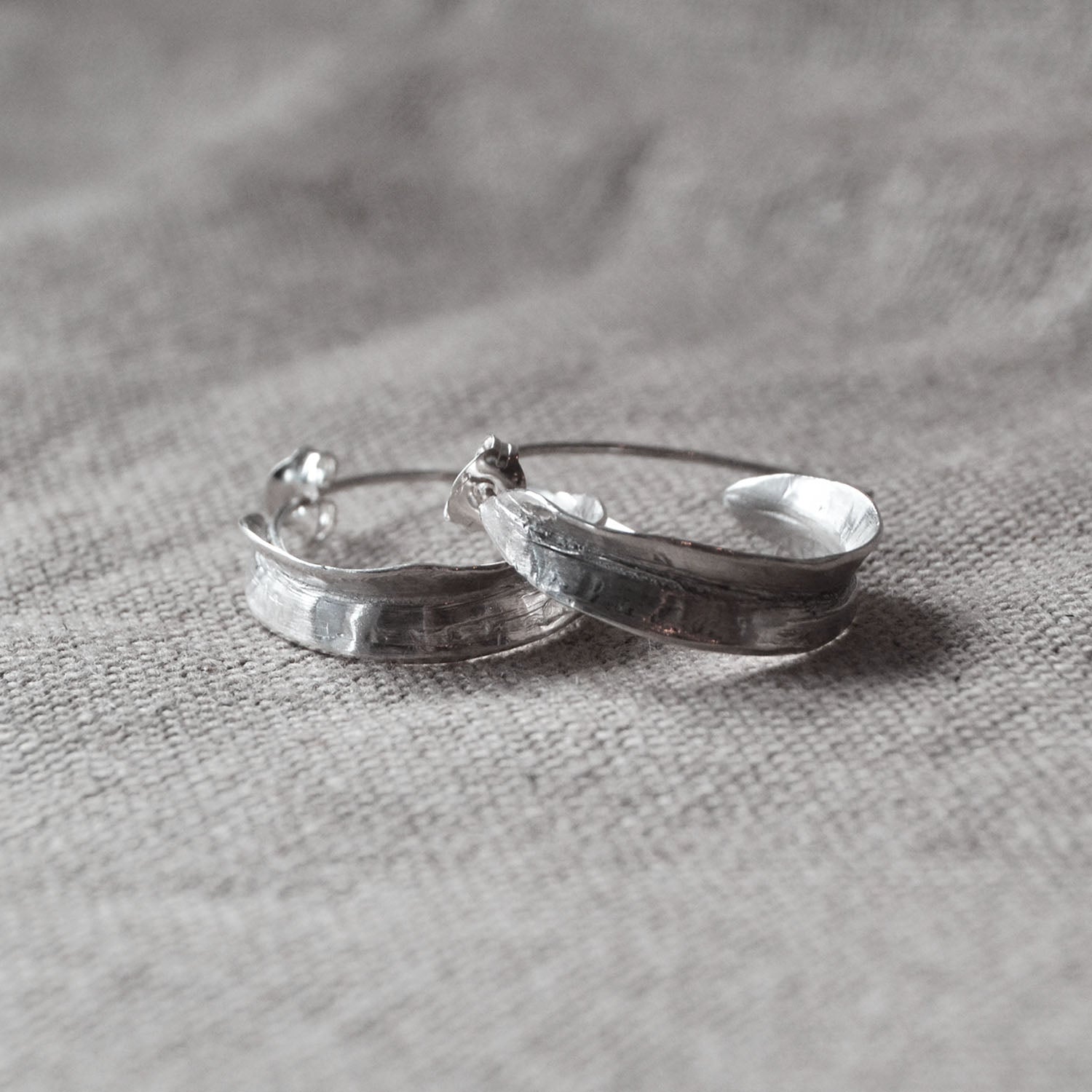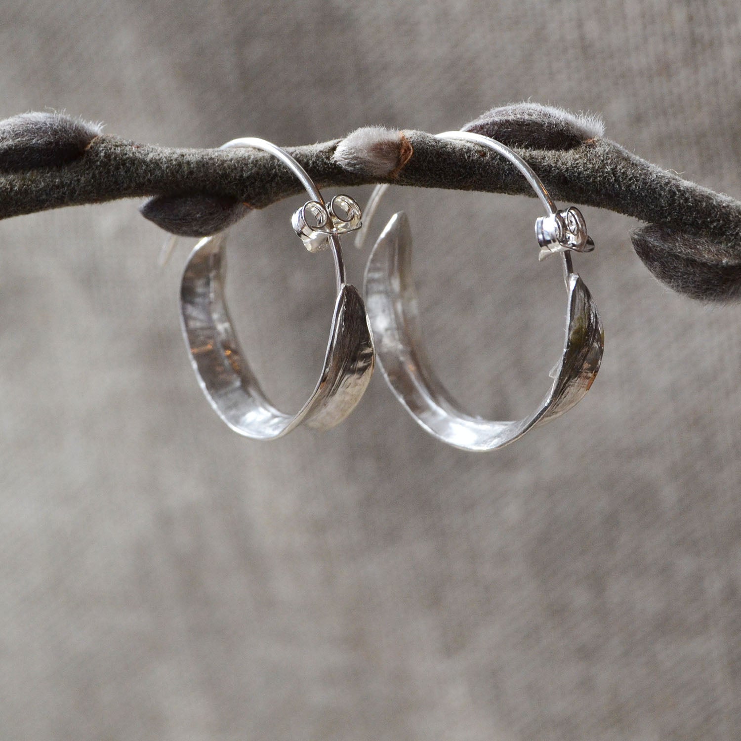 Each piece is hand forged from silver sheet, folded, hammered and shaped to create an organic form which mimics the way real leaves grow and curl.