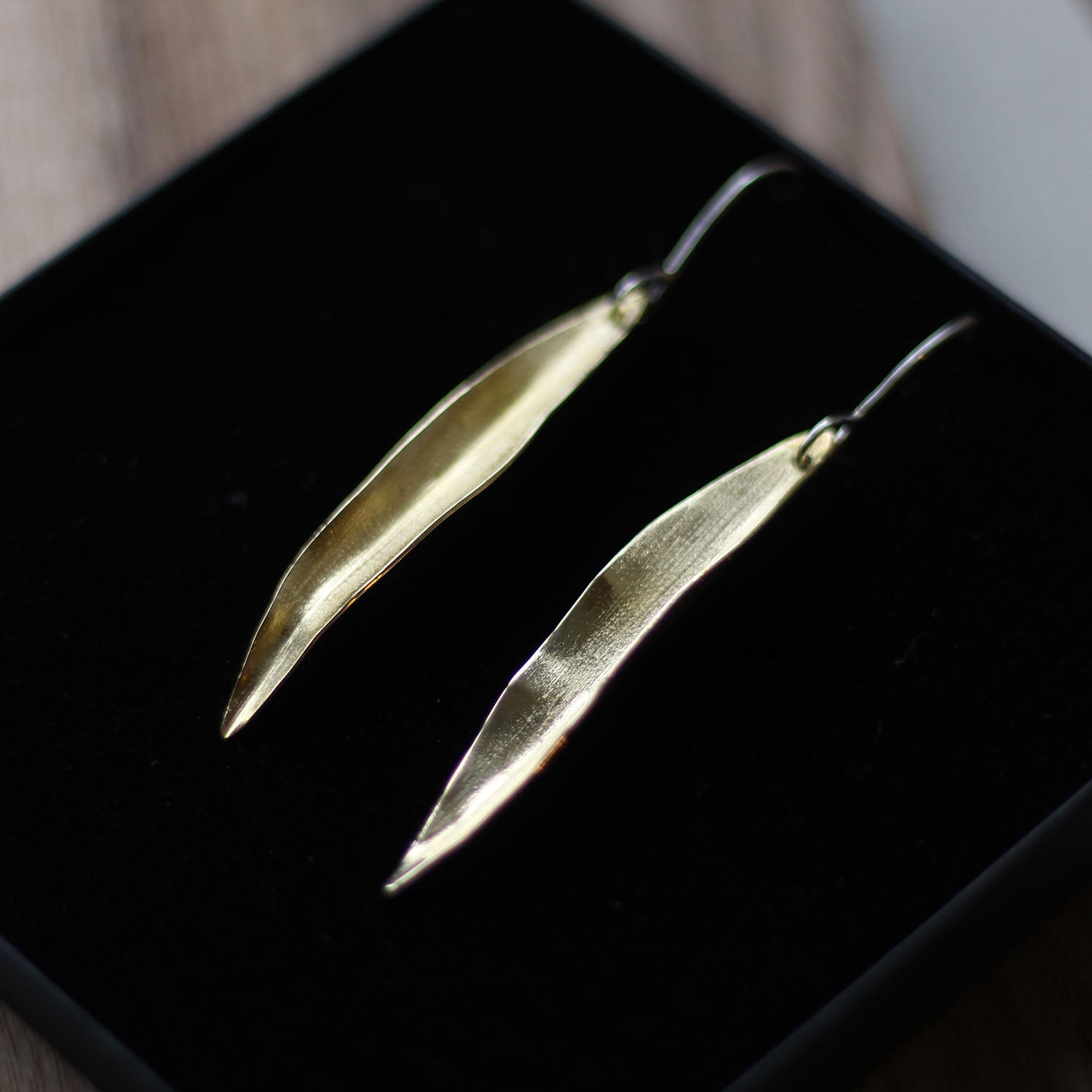 These elegant willow leaf earrings are hand forged and finished with an organic texture.