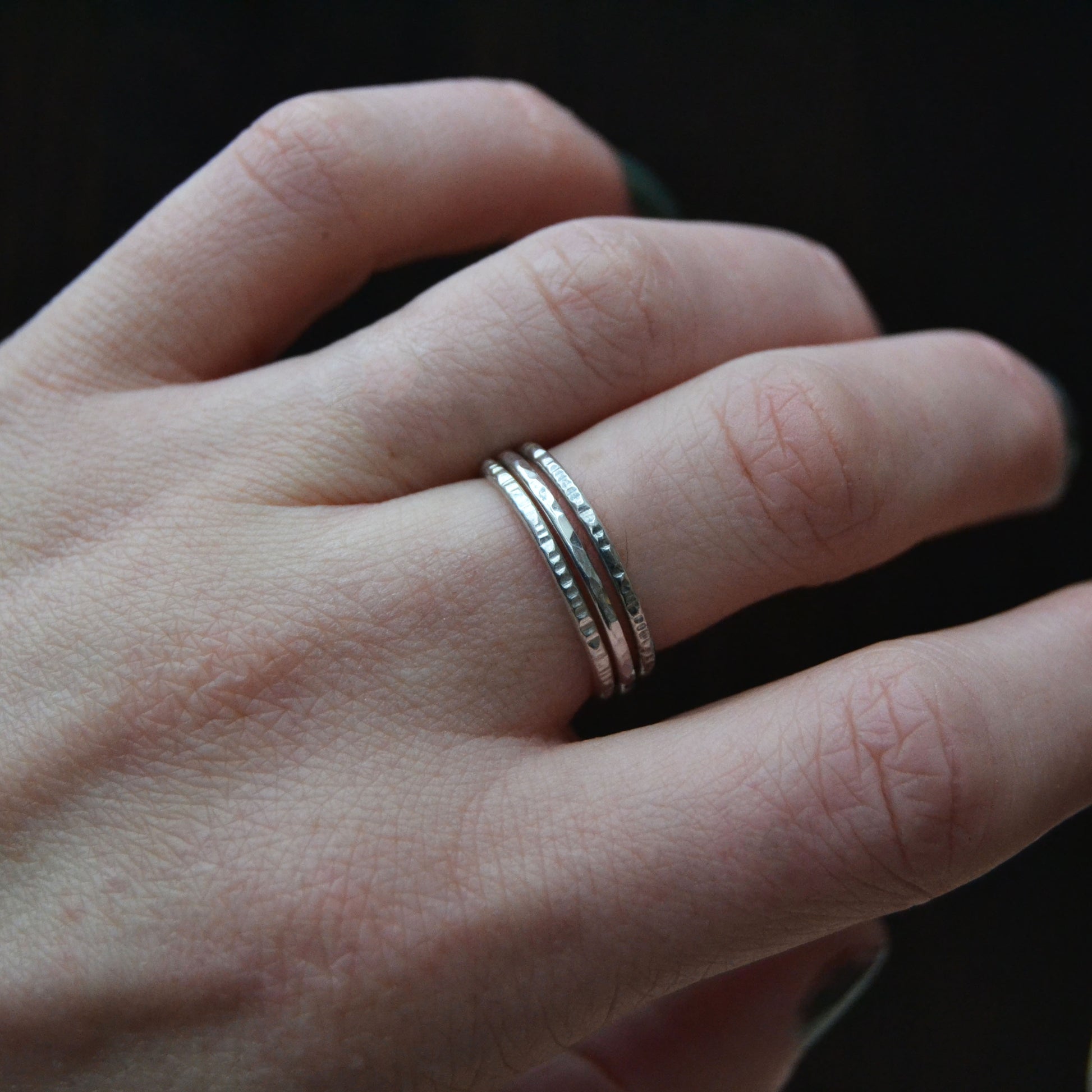 Both textures are made using different hammers, and each ring is made by hand in my home studio.